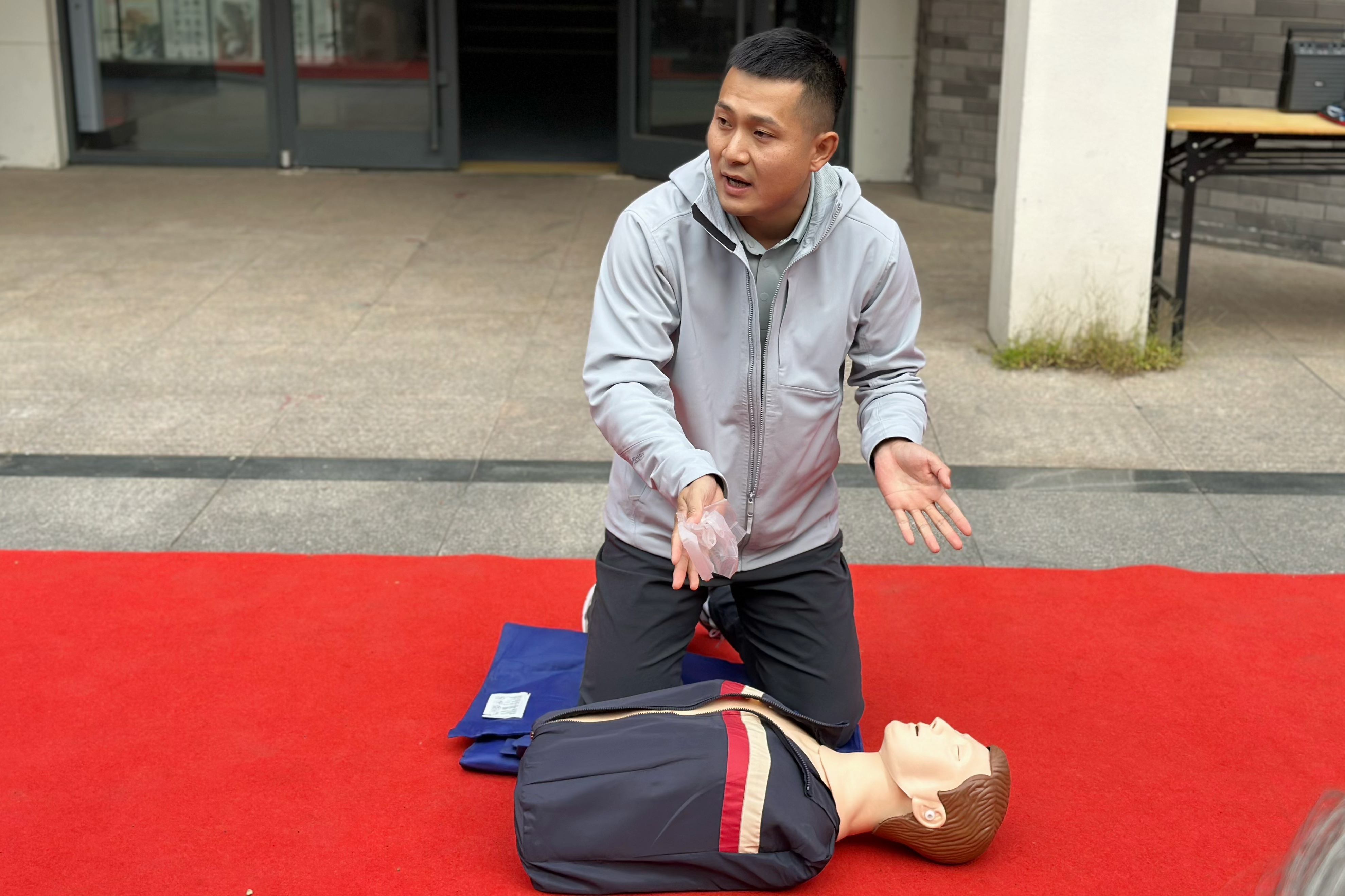 活动伊始,校医院副院长、急救培训师石敏聚焦应急救护核心技能,详细演示海姆立克急救法的完整操作步骤。培训中特别区分成人与儿童的操作差异,通过“理论讲解+动作示范”的方式,清晰说明操作力度、按压位置等关键要点,帮助现场参与者快速掌握不同场景下的急救技巧。