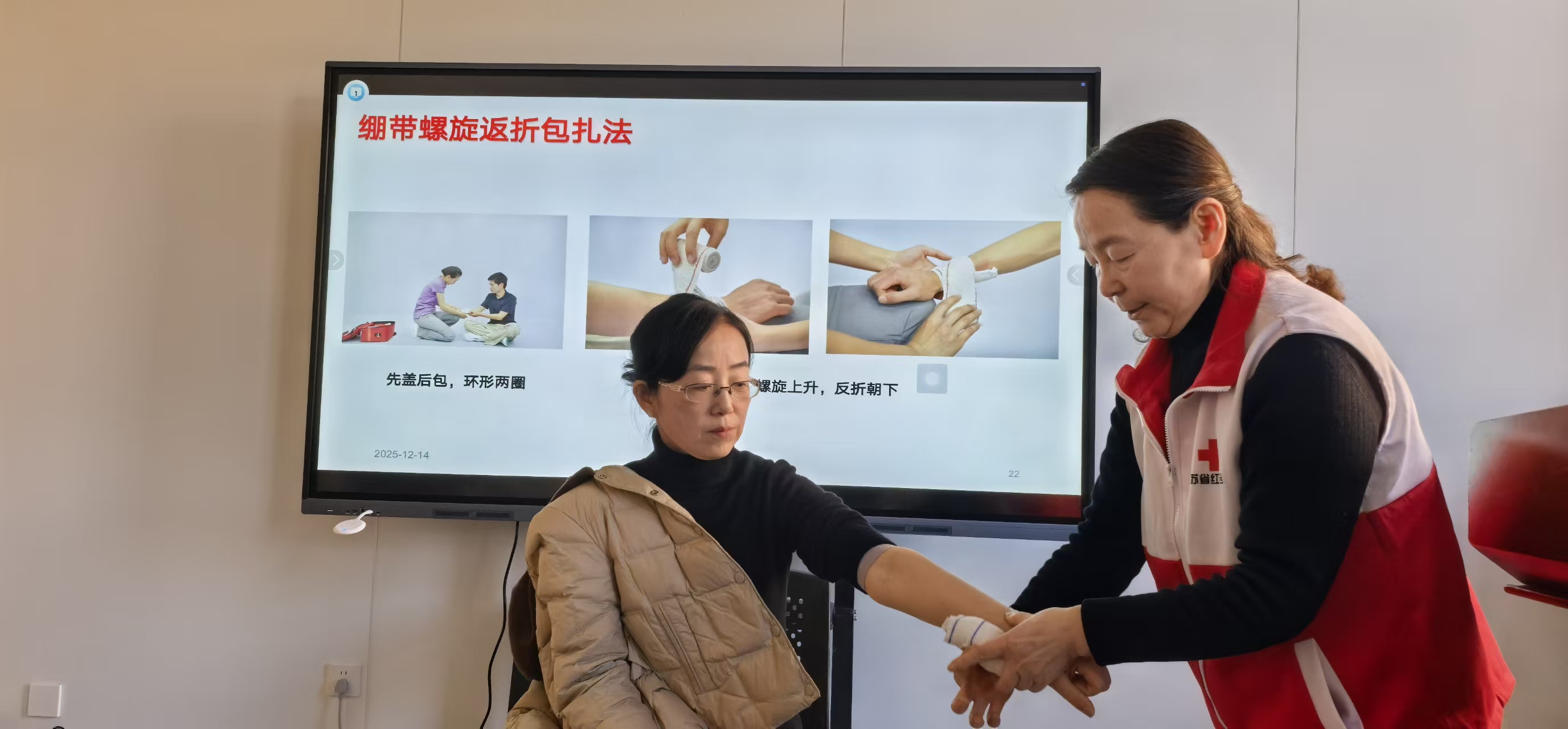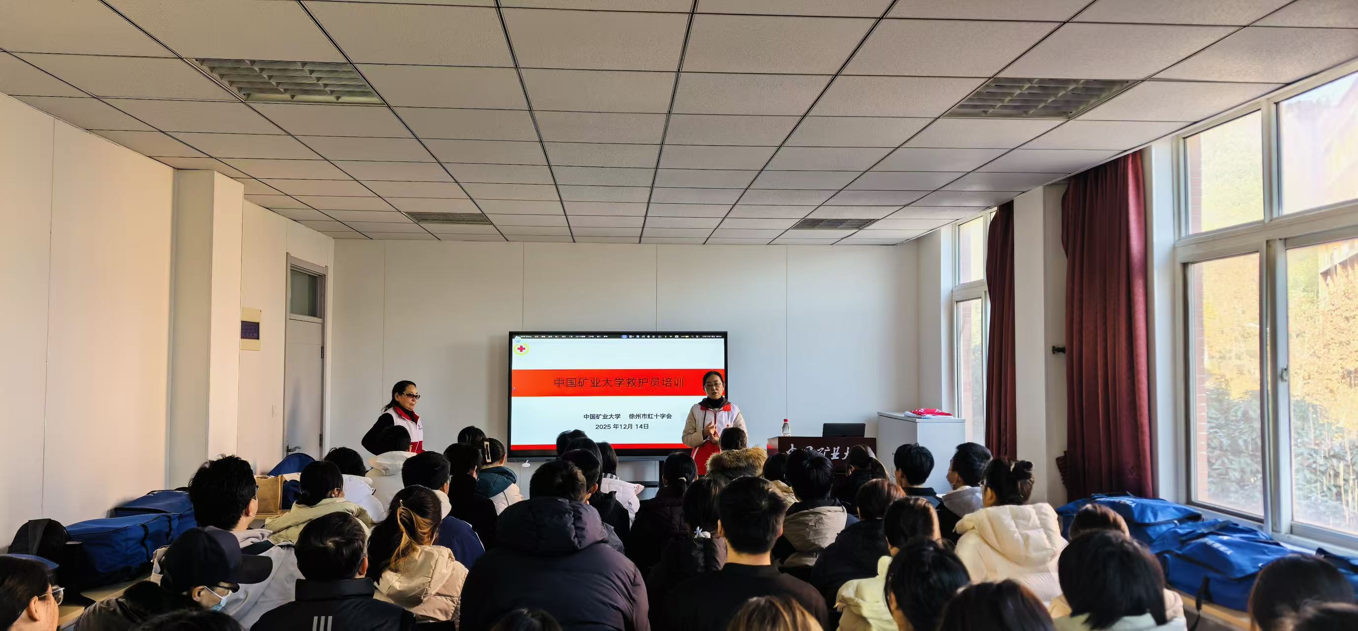 为切实提升我校师生防灾避险意识与自救互救能力,筑牢校园安全防护网,12月14日,校医院联合徐州市红十字会,面向我校师生开展专业应急救护培训。校医院医护人员、体育学院师生及校红十字会成员共同参与此次培训,沉浸式学习急救技能、夯实应急处置基础。