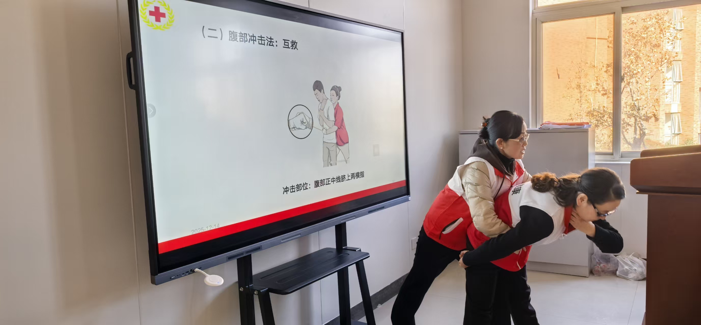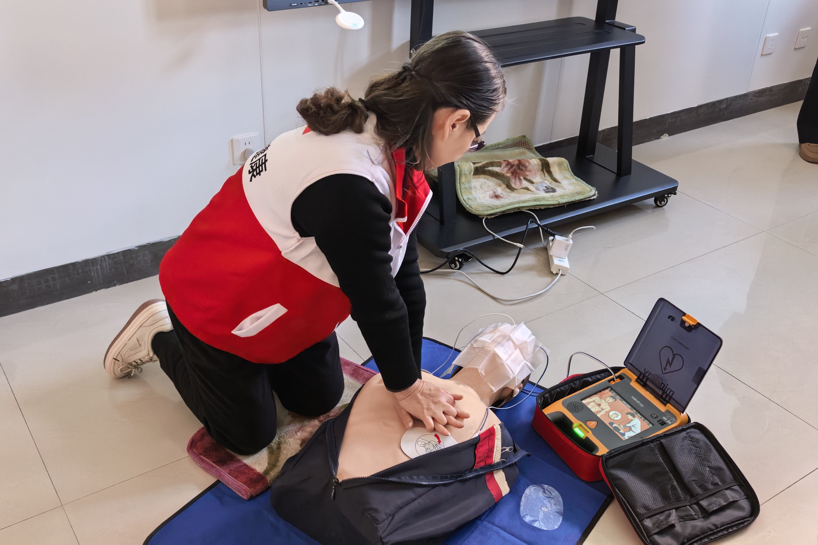 培训环节中,徐州市红十字会赵梅、李建华两位资深讲师结合丰富实战经验,以理论讲解与案例分析相结合的方式,系统讲授核心急救知识。重点围绕成人及儿童呼吸心跳骤停场景,详细拆解心肺复苏术(CPR)的操作流程、动作标准,以及全自动除颤仪(AED)的开机使用、电极片粘贴、协同施救等关键规范与安全注意事项;同时针对日常易发生的异物梗阻、创伤出血等突发情况,精准演示海姆立克急救法、多种止血包扎技巧,确保学员清晰掌握操作要点。