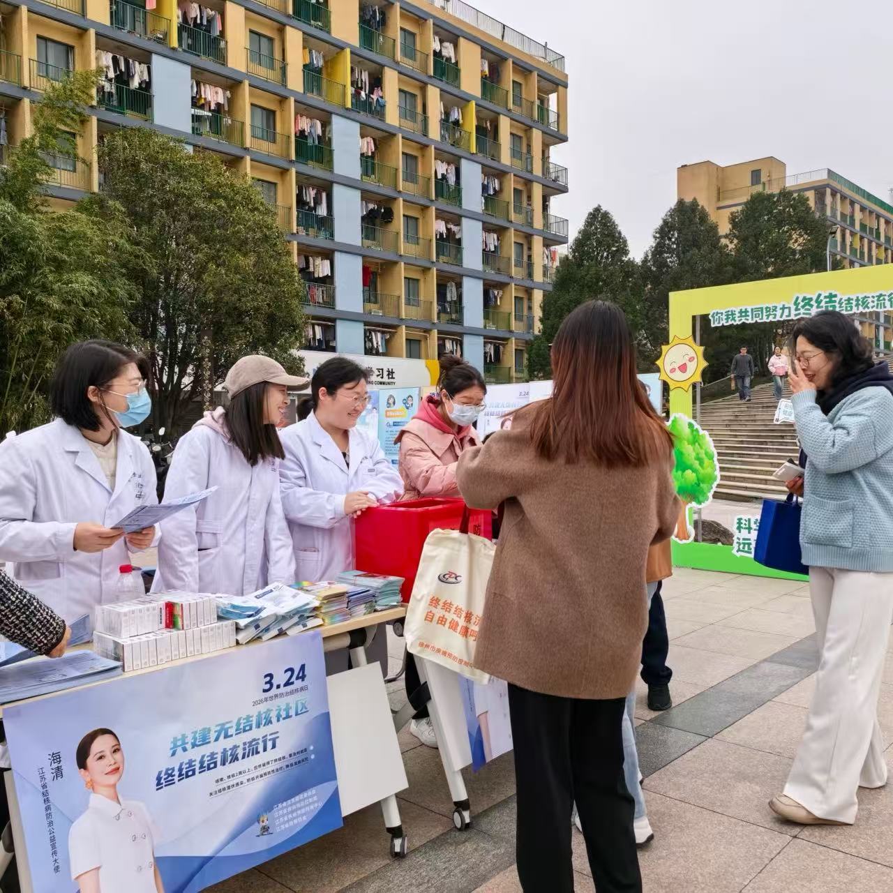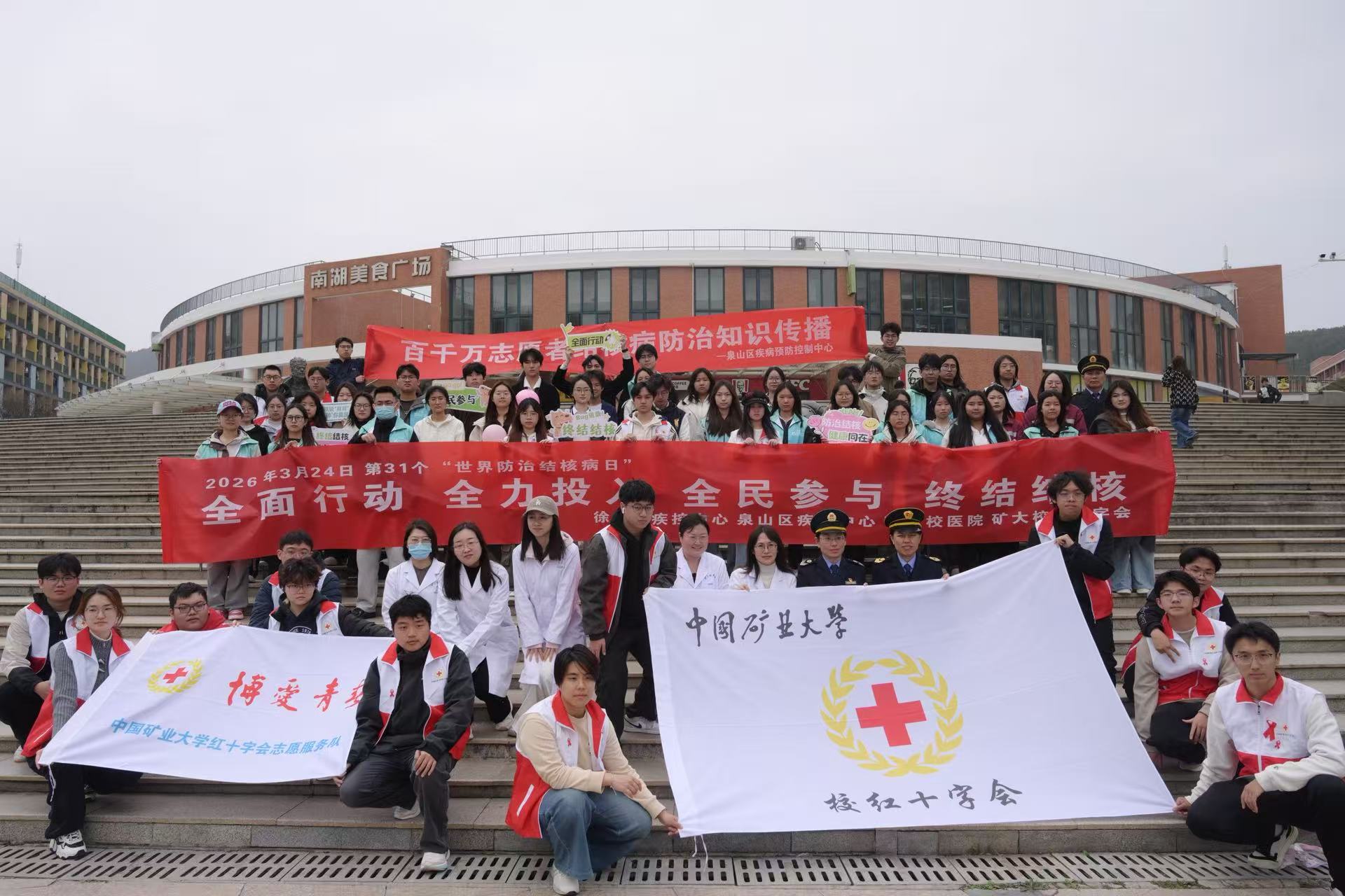 2026年3月24日是第31个“世界防治结核病日”,2026年宣传主题为《全面行动全力投入全民参与终结结核》。为深入贯彻健康第一教育理念,提升师生传染病防控意识与综合防病能力,校医院联合徐州市疾病预防控制中心、泉山区疾病预防控制中心,协同学生工作处、校红十字会等部门及大学生社团,于3月24日在南湖校区开展多病共防系列专题宣传教育活动,以“政府领航、校地联动、全民参与”的模式,筑牢校园公共卫生安全屏障。