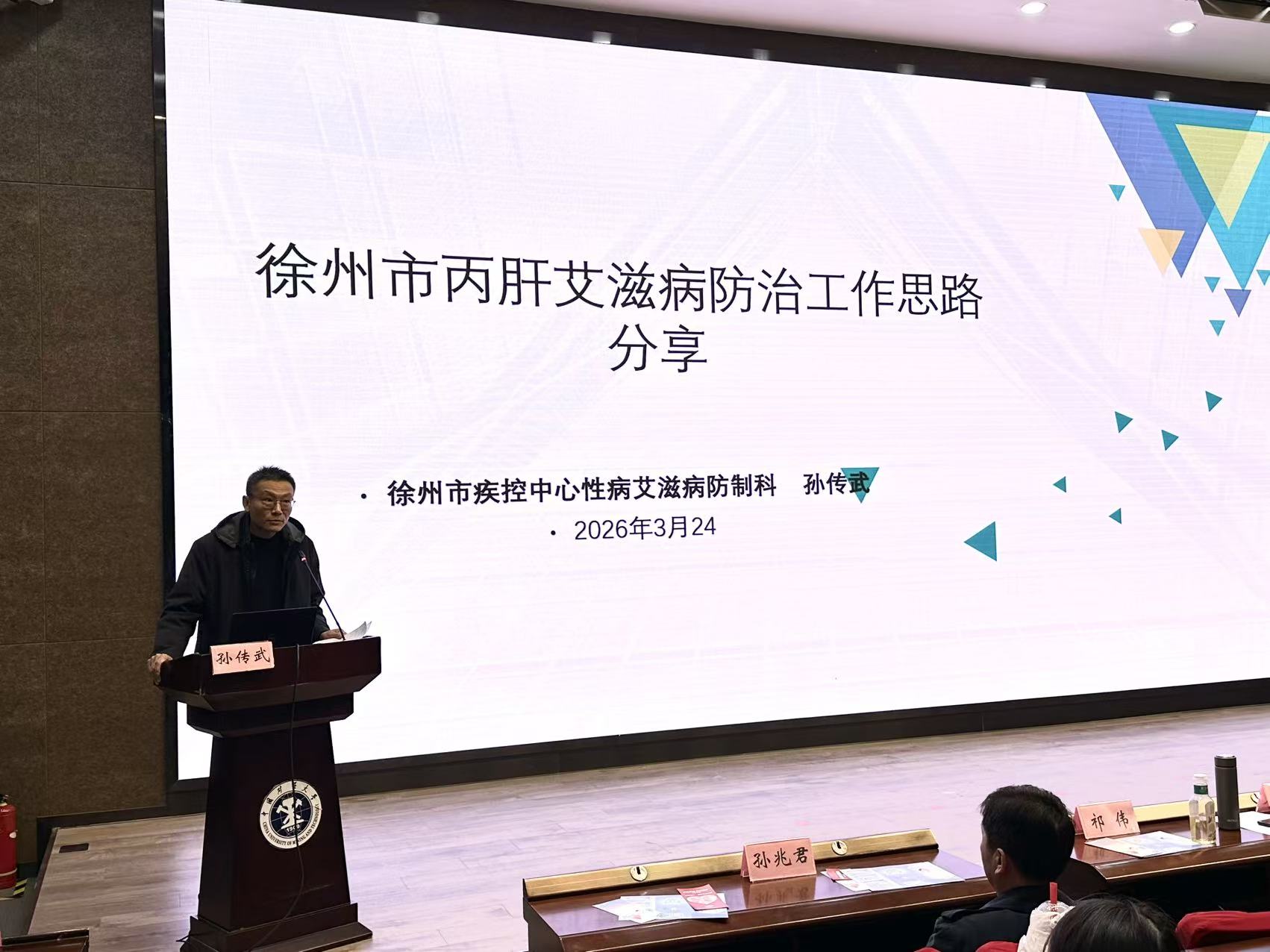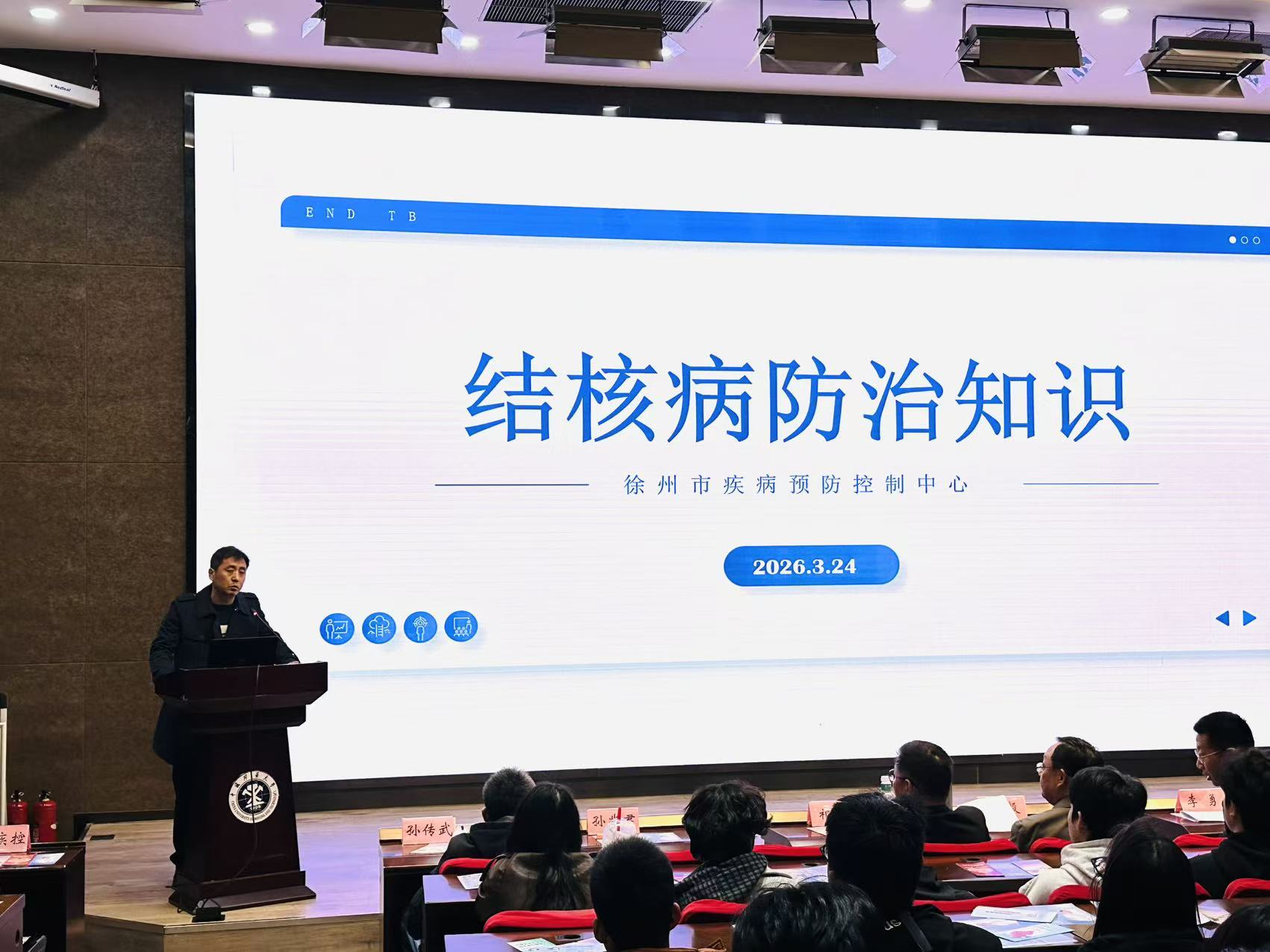 讲座环节,疾控专家带来专业科普分享:市疾控中心孙兆君主任以“结核病防治知识”为题,系统梳理校园结核病防控重点、筛查流程与管理规范;市疾控中心艾防科孙传武老师围绕“徐州市丙肝艾滋病防治工作思路分享”,结合地方防控实践,解读传染病综合防治策略与校园防控实践路径。